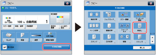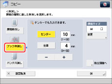 ブック枠消しコピーできる原稿は、表示されている原稿サイズのみです。