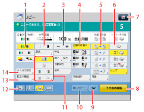 コピー基本画面の表示の切り替えについては、「コピー基本画面の表示を切り替えることができます」を参照してください。