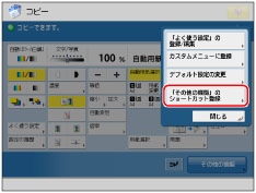 [その他の機能]の中でよく使う機能のショートカットを設定できます。設定したショートカットはコピー(クイック)画面の基本画面上に表示されます。