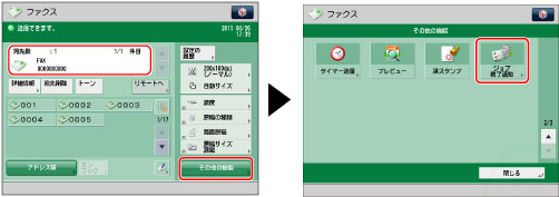 宛先を指定→[その他の機能]→[ジョブ終了通知]を押す