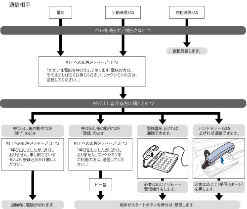 [受信モード選択]で[自動受信]を選択している場合の受信動作です。