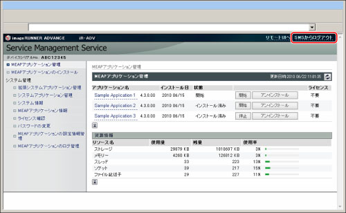 SMSを終了するときは、必ずログアウトしてください。ログアウトせずにWebブラウザーを閉じると、SMSはしばらくのあいだ使用できなくなります。