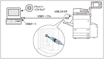 本製品とUSB接続したコンピューターは、ジョブの送信先や転送先として指定できません。また、そのコンピューターでは、リモートUIとNetwork ScanGearは使用できません。