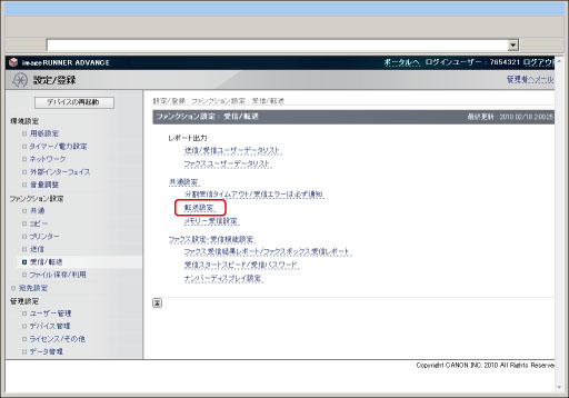 転送の設定をする場合は、管理者としてログインする必要があります。