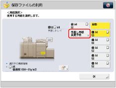 手差し用紙のデフォルト設定が登録されているときは、用紙のサイズ/種類をあらかじめ選択している画面が表示されます。(→手差し用紙のデフォルト設定を登録する)