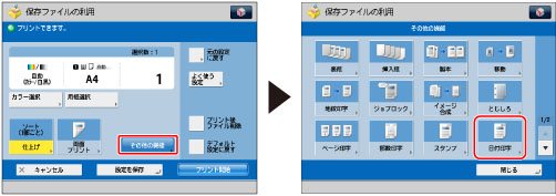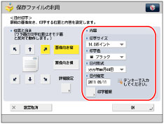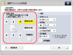 日付印字位置の調整をすることができます。(→ページ印字/スタンプの文字列を登録/編集/削除する)