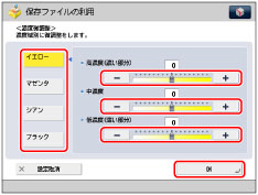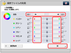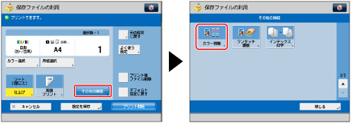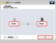 原稿台ガラス/フィーダーから読み込んだボックス文書をフルカラーモードでプリントする場合、[フルカラー時の鮮やかさ設定]で、フルカラーモード時の色調を変更できます。(→フルカラー時の色味を鮮やかにする)