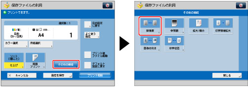 本機能は、アドバンスドボックス、ネットワーク、メモリーメディアに保存したファイルをプリントするときのみ使用できます。