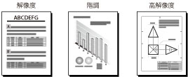 滑らかな階調と輪郭の品位を両立した印刷を行うことができます。グラデーションを使用した図形やグラフなどをプリントするのに適しています。