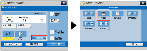 本機能は、アドバンスドボックス、ネットワーク、メモリーメディアに保存したファイルをプリントするときのみ使用できます。