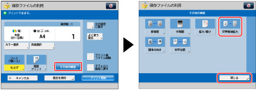 本機能は、アドバンスドボックス、ネットワーク、メモリーメディアに保存したファイルをプリントするときのみ使用できます。