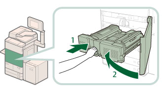 ![]() 内排紙ガイドの周辺には高温の部分があります。用紙を取り除くときには内排紙ガイド部分に触れないように注意してください。