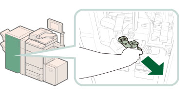 針ケースの交換や断裁屑/パンチ屑/針足屑の処理、あるいは針づまりを取り除くために、装着しているオプション機器のカバーを開けている状態でも、正常に動作しているオプション機器へのコピー/プリントの出力は行われる場合があります。装着しているオプション機器のお取り扱いにはご注意ください。