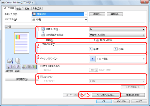 実際にプリンターから出力する用紙サイズを選択します。用紙サイズに合わせて、印刷データを拡大/縮小できます。