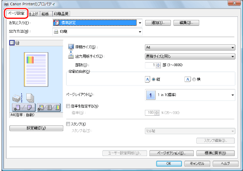 お使いのOS、プリンタードライバーの種類およびバージョンによって画面が異なることがあります。