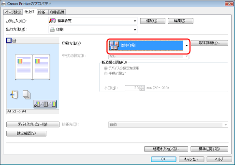 中とじ設定の詳細および[製本詳細]ダイアログボックスの各設定項目の詳細については、ヘルプを参照してください。(→「ヘルプを表示する」)