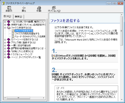 ファクスドライバー画面の[ヘルプ]をクリックすると、ヘルプが表示されます。