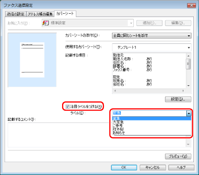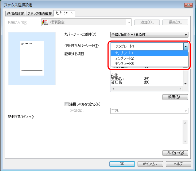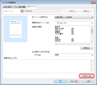 作成したカバーシートのプレビューを見る場合は、[プレビュー]をクリック