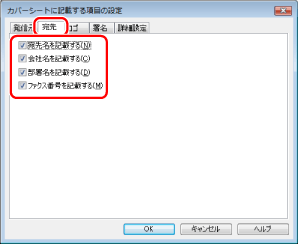 カバーシートに記載する項目を設定する場合は、[設定]をクリック