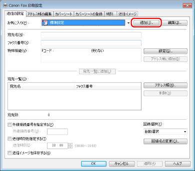 お使いのOS、ファクスドライバーのバージョンによって画面が異なることがあります。