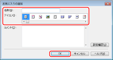 [送信の設定]/[カバーシート]/[特別]タブで[お気に入り]の右側にある[編集]をクリックすると、「お気に入り」の名称、アイコン、コメントを変更できます。