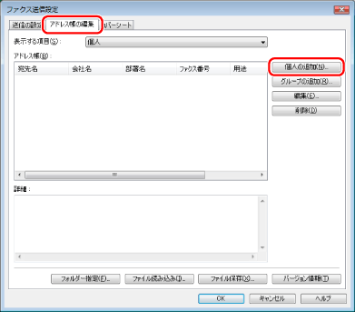 すでに登録された個人のアドレスも編集できます。詳しくは、ファクスドライバー画面の右下の[ヘルプ]をクリックして、ヘルプを参照してください。