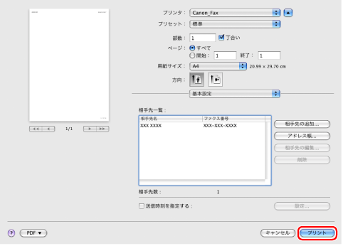 お使いのOS、ファクスドライバーのバージョンによって画面が異なることがあります。