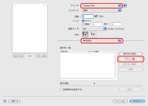 Mac版ファクスドライバーでは、CSV形式の区切り記号として、','(カンマ)のみをサポートします。