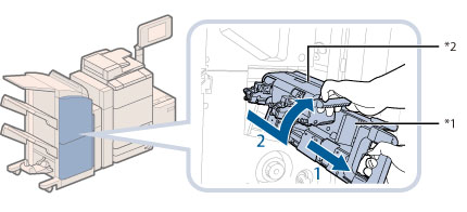 1. Pull the stapler unit of the saddle stitcher unit towards you, and then push it down into its original position.