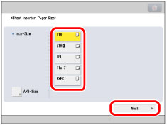Select the same paper size that is loaded in the Document Insertion/Folding Unit-G1 or Document Insertion Unit-J1.