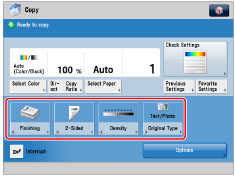 You can register modes in the shortcut keys displayed on the Copy screen. You can register up to five desired buttons from [Options] and [Favorite Settings].