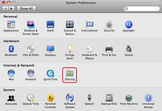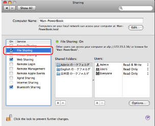 You can use the shared folder in [Drop Box] under [Public]. You can access the [Drop Box] as follows: On the [Go] menu, click [Home] → enter the login user name → select [Drop Box] under [Public].