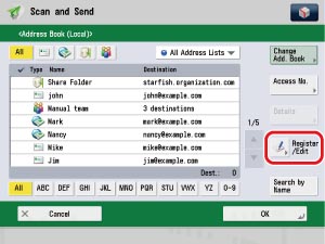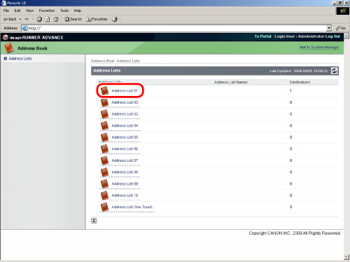 Click [Address Book] → [Address List 01] on the Address List screen.