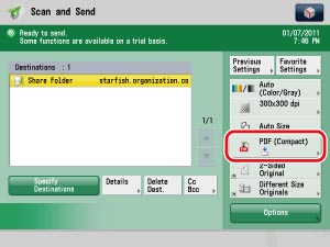 You can convert original colour/grayscale images scanned at a resolution of 300 dpi to compact (approx. 1/10 original size) PDF or XPS files. This mode eliminates the issue of the large file size of digitized documents, reducing colour documents to the size of black-and-white documents. This also enables you to reduce the load on the network and servers. For details, see