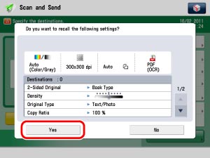 For more information on the confirmation dialog box for the settings, see "Sending a Document Using the Quick Menu."