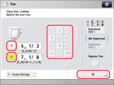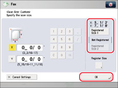 If you send a fax in the Direct Sending or Manual Sending mode and place your originals in the feeder, the Scan Size setting that you specify will not be used.