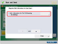 Press [Auth. Information for File TX/Browsing].