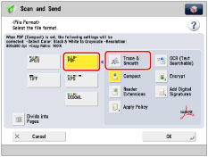If you set [Trace & Smooth], the machine automatically detects which parts of the document are text or line drawings. However, the machine may be unable to recognize which parts of the scanned document are text and line drawings, depending on the scanned document.