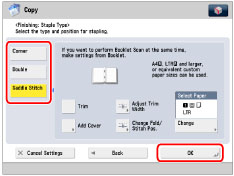 The [Saddle Stitch] mode can be set only if 2-Sided Copying is set.