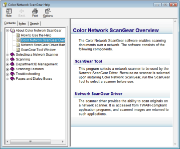Viewing the Color Network ScanGear/Network ScanGear Help