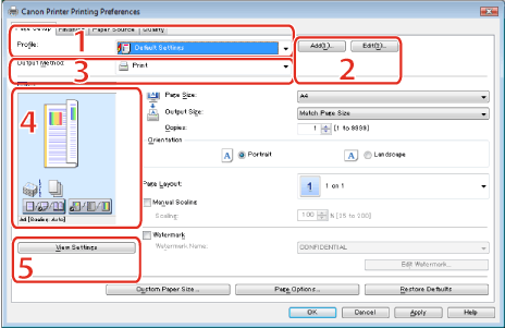The following functions are common to the [Page Setup], [Finishing], [Paper Source], and [Quality] tabs.