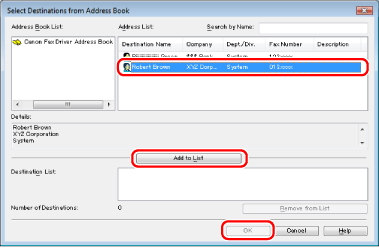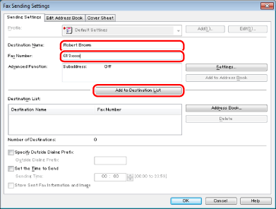 If you have selected [Reenter Fax Number before adding Destination to [Destination List]] in the [Security Settings] dialog box of the [Special] tab, the [Confirm Password] dialog box is displayed when you click [Add to Destination List]. For details, see the online help (see "Viewing the Online Help").