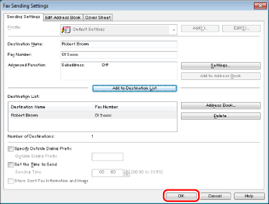The number of destinations that you can send to at one time depends on the conditions under which the cover sheet has been attached. For details, view the online help (see "Viewing the Online Help").