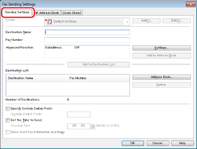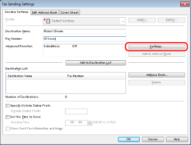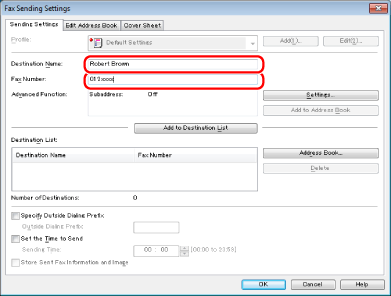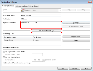 If you have selected [Reenter Fax Number before adding Destination to [Destination List]] in the [Security Settings] dialog box of the [Special] tab, the [Confirm Password] dialog box is displayed when you click [Add to Destination List]. For details, see the online help (see "Viewing the Online Help").