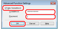 When using the subaddress function, the destination's fax must support subaddress communication.