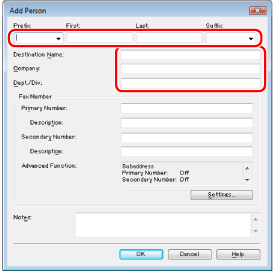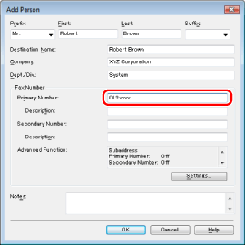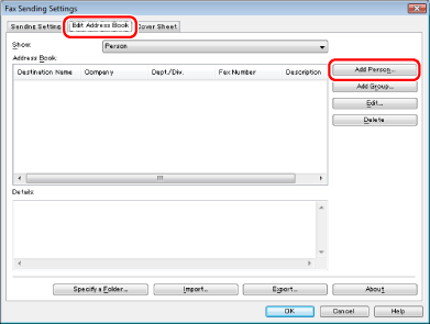 You can also edit previously registered single person addresses. For more information, click [Help] in the bottom right-hand corner of the fax driver window to view the online help.