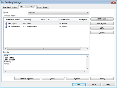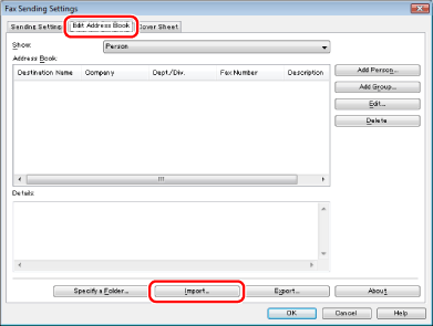 You cannot access or edit the address book if you do not have access permission to the destination folder of the address book. If this is the case, log on as a user having access permission to the folder, or click [Specify a Folder] in the [Edit Address Book] tab, and change the destination folder of the address book to a folder that you have write permission for (see "Changing the Address Book Export Destination").