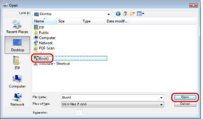 You can load data from CSV (*.csv) files or Canon Address Book files (*.abk) into the address book.