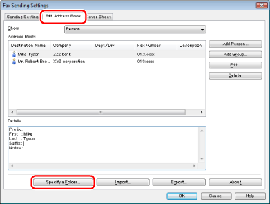 Click [Edit Address Book] → [Specify a Folder].