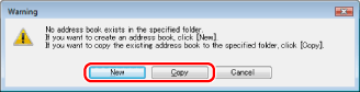 If you want to create an address book, click [New], or if you want to copy the existing address book to the specified folder, click [Copy].